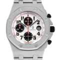 - オーデマピゲを代表し、ラグジュアリースポーツウォッチの代名詞とも言えるロイヤルオーク。イギリス海軍の戦艦「ロイヤルオーク」をモチーフにした八角形ベゼルと六角形ネジは、一目でそれと分かる独特のデザインです。ゴムを使用したリューズとプッシュボタンは、操作性を抜群に向上させています。ムーブメントにはCal.3120をベースにクロノグラフモジュールを積んだ自社開発のCal.3126/3840を搭載。パワーリザーブ50時間。100M防水。