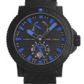 - “マキシ・マリーンダイバー"コレクションより、ブラックとブルーのカラーリングが印象的な“ブラックシー"が入荷致しました。ラバーコーティングされたステンレススティールケースは200m防水に対応。逆回転防止ベゼル、12時位置には42時間パワーリザーブインジケーターを備えています。
