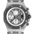 - ロイヤルオークはラグジュアリー・スポーツウォッチとして1972年に発表され、今やオーデマ・ピゲの顔として高い人気を誇る代表作です。こちらは存在感のあるダイナミックなオフショアクロノモデル。クロノグラフとデイト表示を備え、機能性にも優れた非常に人気の品となっております。ストレートグレーのダイアルに、ライトグレーとダークグレーのコンビのラバーと、モノクロームを極めたモデルです。ムーブメントには自動巻きCal.3126/3840を搭載。パワーリザーブ50時間。100m防水。