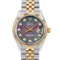 - 1945年に誕生し、金属塊から削りだした防水性の高いオイスターケース、午前0時頃瞬時に日付けが変わるデイトジャスト、全回転式ローターを搭載したパーペチュアルと、ロレックス三大機構の全てを搭載したモデルです。こちらはフルーテッドベゼルを搭載した31mmのオイスターケースがエレガントな輪郭を際立たせているモデルです。