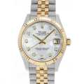 - 1945年に誕生し、金属塊から削りだした防水性の高いオイスターケース、午前0時頃瞬時に日付けが変わるデイトジャスト、全回転式ローターを搭載したパーペチュアルと、ロレックス三大機構の全てを搭載したモデルです。こちらはフルーテッドベゼルを搭載した31mmのオイスターケースがエレガントな輪郭を際立たせているモデルです。
