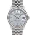 - 1945年に誕生し、今やロレックスの顔とも言える"デイトジャスト"。ロレックス三大機構(金属塊から削りだした防水性の高いオイスターケース、午前0時頃瞬時に日付けが変わるデイトジャスト機構、全回転式ローターを搭載したパーペチュアル機構)を搭載したモデルです。こちらはベゼルにダイヤモンドを配し、ジュビリーブレスを採用することでラグジュアリーな雰囲気を醸し出しています。