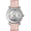 - ハッピーダイヤモンドの大ヒットを受け、1993年に発表されたハッピースポーツ。それまでに無かった斬新でキュートなデザインが高い評価を受け、瞬く間に人気シリーズの仲間入りを果たしました。ダイアルの上には2枚のサファイヤガラスが重ねられており、その間をハートを象ったモチーフが流れるように滑ります。豪華さと上品さを兼ね備えた贅沢な逸品です。