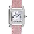 - ハッピーダイヤモンドの大ヒットを受け、1993年に発表されたハッピースポーツ。それまでに無かった斬新でキュートなデザインが高い評価を受け、瞬く間に人気シリーズの仲間入りを果たしました。ダイアルの上には2枚のサファイヤガラスが重ねられており、その間を5つのダイヤモンドが流れるように滑ります。