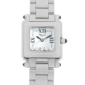 - 腕の動きに併せて、ダイアルの中でキラキラと輝きを放ちながら動き続ける5粒のムービングダイヤがフェミニンな、ショパールのハッピースポーツです。宝飾系のモデルが多いショパールの中でも、ステンレスのケースとブレスレットを使用しておりカジュアルな装いにピッタリなモデルです。リュウズの先端とラグの横にセッティングされた合計5つのサファイアがアクセントになっています。