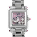 - “ハッピーダイヤモンド”の大ヒットを受け、1993年に発表された“ハッピースポーツ”。それまでに無かった斬新でキュートなデザインが高い評価を受け、瞬く間に人気シリーズの仲間入りを果たしました。ダイアルの上には2枚のサファイヤガラスが重ねられており、その間を月と星のモチーフが流れるように滑ります。