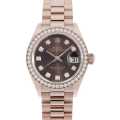 - 2015年に発表された28mmモデルのニューモデルです。日本人の肌に馴染みやすいエバーローズゴールドがケースの素材に採用されています。ベゼルとインデックスにダイヤモンドがセッティングされており、豪華な存在感を放ちます。特にローマンインデックス上にセットされた9時のインデックスが印象的です。ムーブメントはクロノメーター認定のキャリバー2236を搭載。
