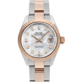 - 1945年に誕生し、今やロレックスの顔とも言える"デイトジャスト"。金属塊から削りだした防水性の高いオイスターケース、午前0時頃瞬時に日付けが変わるデイトジャスト機構、全回転式ローターを搭載したパーペチュアル機構と、ロレックス三大機構を搭載したモデルです。艶やかなシェルダイアルに10粒のダイヤモンドを配し、ラグジュアリーな雰囲気を醸し出しています。