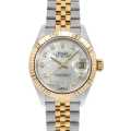 - 1945年に誕生し、今やロレックスの顔とも言えるデイトジャストは、金属塊から削り出した防水性の高いオイスターケース、午前0時頃瞬時に日付けが変わるデイトジャスト機構、全回転式ローターを搭載したパーペチュアル機構と、ロレックス三大機構を搭載したモデルです。ベゼルには細かい山が装飾されたフルーテッドベゼルを採用しており、可愛いデザインでありながら高級感あふれる華やかな逸品です。