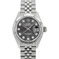 - 1945年に誕生し、今やロレックスの顔とも言える"デイトジャスト"。金属塊から削りだした防水性の高いオイスターケース、午前0時頃瞬時に日付けが変わるデイトジャスト機構、全回転式ローターを搭載したパーペチュアル機構と、ロレックス三大機構を搭載したモデルです。こちらの型番は2017年に発表されたモデルとなり、新色のダークグレーダイアルが採用されケース径が26mmから28mmへサイズアップしているのが特徴です。