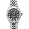 - 1945年に誕生し、今やロレックスの顔とも言える"デイトジャスト"。金属塊から削りだした防水性の高いオイスターケース、午前0時頃瞬時に日付けが変わるデイトジャスト機構、全回転式ローターを搭載したパーペチュアル機構と、ロレックス三大機構を搭載したモデルです。こちらの型番は2017年に発表されたモデルとなり、新色のダークグレーダイアルが採用されケース径が26mmから28mmへサイズアップしているのが特徴です。