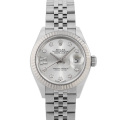 - 1945年に誕生し、今やロレックスの顔とも言える「デイトジャスト」。金属塊から削りだした防水性の高いオイスターケース、午前0時頃瞬時に日付けが変わるデイトジャスト機構、全回転式ローターを搭載したパーペチュアル機構と、ロレックス三大機構を搭載したモデルです。こちらは9Pスターダイヤインデックスに9時位置の「IX」のダイヤが大きくワンポイントになったデザインです。合わせやすいシルバーダイヤルに28mmケースを採用しています。