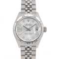 - 1945年に誕生し、今やロレックスの顔とも言える"デイトジャスト"。金属塊から削りだした防水性の高いオイスターケース、午前0時頃瞬時に日付けが変わるデイトジャスト機構、全回転式ローターを搭載したパーペチュアル機構と、ロレックス三大機構を搭載したモデルです。こちらは9Pスターダイヤインデックスに9時位置の「IX」のダイヤが大きくワンポイントになったデザインです。合わせやすいシルバーダイヤルに28mmケースを採用しています。