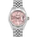 - 1945年に誕生し、今やロレックスの顔とも言えるデイトジャストは、金属塊から削り出した防水性の高いオイスターケース、午前0時頃瞬時に日付けが変わるデイトジャスト機構、全回転式ローターを搭載したパーペチュアル機構と、ロレックス三大機構を搭載したモデルです。ベゼルには細かい山が装飾されたフルーテッドベゼルを採用しており、可愛いデザインでありながら高級感あふれる華やかな逸品です。