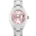 - 1945年に誕生し、今やロレックスの顔とも言えるデイトジャスト”は、金属塊から削り出した防水性の高いオイスターケース、午前0時頃瞬時に日付けが変わるデイトジャスト機構、全回転式ローターを搭載したパーペチュアル機構と、ロレックス三大機構を搭載したモデルです。ベゼルには細かい山が装飾されたフルーテッドベゼルを採用しており、可愛いデザインでありながら高級感あふれる華やかな逸品です。