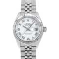 - 1945年に誕生し、今やロレックスの顔とも言えるデイトジャストは、金属塊から削り出した防水性の高いオイスターケース、午前0時頃瞬時に日付けが変わるデイトジャスト機構、全回転式ローターを搭載したパーペチュアル機構と、ロレックス三大機構を搭載したモデルです。ベゼルには細かい山が装飾されたフルーテッドベゼルを採用しており、可愛いデザインでありながら高級感あふれる華やかな逸品です。