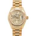 - レディース・ロレックスの定番モデルとも言える"デイトジャスト"。こちらは上品なシャンパンダイアルのモデルです。こちらはイエローゴールドのケースにプレジデントブレスレット、ダイアルには10Pダイヤが施されたデザインです。ムーブメントはパワーリザーブ55時間対応の自動巻きCal.2236を搭載。100m防水。