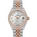 - レディース ロレックスの定番モデルとも言える"デイトジャスト"。こちらはステンレススティールとエバーローズゴールドのコンビとなり、ベゼルとインデックスに配されたダイヤモンドの煌きが美しいモデルです。9時のみ豪華なローマンインデックスとなっており、インデックスダイヤを留める爪が星型なのもチャーミングです。ムーブメントはパワーリザーブ55時間対応の自動巻きCal.2236を搭載。