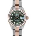 - レディース・ロレックスの定番モデルとも言える"デイトジャスト"。こちらはスチールとエバーローズゴールドのコンビモデルで、ベゼル、インデックスにセッティングされたダイヤモンドの煌きが美しいモデルです。ムーブメントはパワーリザーブ55時間対応の自動巻きCal.2236を搭載。100m防水。