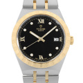 - チューダーの「ロイヤル」シリーズは、スポーティーかつラグジュアリーな時計でありながら、優れたコストパフォーマンスをも発揮しています。一体型の「5列リンク」メタルブレスレットの表面と角の滑らかな質感は、手首に装着したときのフィット感を確かなものにしています。表面のポリッシュと溝の彫りが交互に施されたノッチ入りベゼルが個性的です。