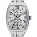 - フランク・ミュラー氏の友人でもある銀行家から「世界の金融市場の時間が分かる時計が欲しい」との要望を受けた事で誕生したマスターバンカー。1996年に発表されるや、瞬く間にブランドを代表する人気モデルとなりました。デザイン性の高さもさることながら、3つの時間帯を同時に表示し瞬時に読み取る事ができ、且つ一つのリューズで時刻の調整が可能という高い機能性を持ち合わせています。こちらはシルバーダイアルにギョーシェ彫りがあしらわれた端正な顔立ちの一本です。
