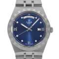 - ロイヤルコレクションは、スポーティーかつラグジュアリーな時計でありながら、優れたコストパフォーマンスをも発揮しています。こちらは2020年発表モデルです。一体型の5列リンクメタルブレスレットの表面と角の滑らかな質感は、手首に装着したときのフィット感を確かなものにしています。ベゼルは表面のポリッシュと溝の彫りが交互に施されたノッチ入りデザインが個性的です。こちらは、ダイアル上に8個のダイヤモンドが配された華やかなモデルになります。