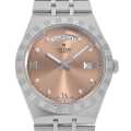 - ロイヤルコレクションは、スポーティーかつラグジュアリーな時計でありながら、優れたコストパフォーマンスをも発揮しています。こちらは2020年発表モデルです。一体型の5列リンクメタルブレスレットの表面と角の滑らかな質感は、手首に装着したときのフィット感を確かなものにしています。ベゼルは表面のポリッシュと溝の彫りが交互に施されたノッチ入りデザインが個性的です。こちらは、ダイアル上に8個のダイヤモンドが配された華やかなモデルになります。