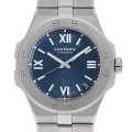- ショパールの共同社長を務めるカール・フリードリッヒ・ショイフレが1980年に生み出した最初の時計サンモリッツ。それを現代的に解釈したモデルがアルパイン イーグルです。ブルーの文字盤は、鷲の目の虹彩を彷彿とさせる特殊な模様がデザインされています。また、秒針は鷲の羽を思わせる矢の形をしており、アルプスの鷲とそのビオトープへの情熱、自然との調和を感じさせます。ショパール完全自社製自動巻きムーブメントCal.01.01-C搭載。パワーリザーブ60時間。100m防水。