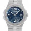 - ショパールの共同社長を務めるカール・フリードリッヒ・ショイフレが1980年に生み出した最初の時計サンモリッツ。それを現代的に解釈したモデルがアルパイン イーグルです。ブルーの文字盤は、鷲の目の虹彩を彷彿とさせる特殊な模様がデザインされています。また、秒針は鷲の羽を思わせる矢の形をしており、アルプスの鷲とそのビオトープへの情熱、自然との調和を感じさせます。ショパール完全自社製自動巻きムーブメントCal.01.01-C搭載。パワーリザーブ60時間。100m防水。