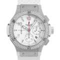 - 新たなウブロの意欲作として2005年に発表されてから今日に至るまで、その名の通り世界中で爆発的な人気を続けるビッグバン。こちらはダイアルとベルトを白でまとめた爽やかなモデルです。ベゼルに114ピース、1.78カラットのダイヤモンドがセッティングされています。ベルトにはナチュラルラバーストラップを採用。フォールディング・バックルの剛性が高く、しっかりと留まるため信頼性は申し分ありません。大きめなサイズが好きな女性にもお勧めできる時計です。