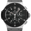 - 2005年にウブロの新たな意欲作として発表された「ビッグバン」。発表当時から現在に至るまで、その名の通り世界中で爆発的な人気で、国内外のスポーツ選手など多くのセレブリティに愛用されています。こちらはステンレスケースにブラックカーボンベゼルのコンビネーションがスポーティな印象。シースルーバックの裏蓋からはムーブメントの動きを堪能する事が出来ます。世界100本限定モデル。