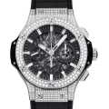 - ウブロの大人気シリーズ「ビッグバン」の文字盤をスケルトン化し、内部の機械を直に見えるようにしたのが「アエロバン」です。今回入荷のこちらは、ステンレススティール製のケースとベゼルをベースとして、贅沢にもパヴェダイヤを敷き詰めたモデルです。先鋭的なデザインを発信し続けるウブロならではのデザインに仕上がっています。