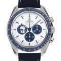- オメガの宇宙探査への貢献を称えて、1970年にNASAの宇宙飛行士から贈られた「シルバー スヌーピー アワード」に敬意を表し、50周年を記念して制作されました。42mmのステンレススティール製ケースにブルーのナイロン製ファブリックストラップを組み合わせ、ストラップの裏地にはアポロ13号の軌道がエンボス加工で描かれています。9時位置のブルーのサブダイアルには、スヌーピーをかたどったエンボス加工のシルバー製メダリオンがあしらわれています。