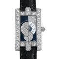 - ダイヤを贅沢に敷き詰めた18金ホワイトゴールドケースは、「キング・オブ・ダイヤモンド」と称され世界的に名高いハリーウィンストンを象徴するデザインです。ケースの上下にあしらわれたアーチ形のラグは、ニューヨーク5番街にあるハリーウィンストン本店の玄関ドアをモチーフにデザインされました。ジュエラーらしいゴージャスなフォルムと、ホワイトゴールドを使った質感が高級感を醸し出しています。