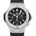 - 新たなウブロの意欲作として2005年に発表されてから今日に至るまで、その名の通り世界中で爆発的な人気を続けるビッグバン。様々なバリエーションがありますが、今回入荷したのはステンレスケースに2重のダイヤモンドをあしらったゴージャスなモデルです。クロノグラフ、スモールセコンド、デイト表示機能を搭載。バックスケルトン仕様。