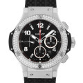 - 新たなウブロの意欲作として2005年に発表されてから今日に至るまで、その名の通り世界中で爆発的な人気を続けるビッグバン。こちらはケースサイド(黒い部分)に新素材ケブラーを使用した、耐熱性・耐衝撃性に優れたモデルです。ベゼルには114石のダイヤがセッティングされており、ゴージャス感溢れる仕上がりとなっています。