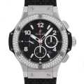 - 新たなウブロの意欲作として2005年に発表されてから今日に至るまで、その名の通り世界中で爆発的な人気を続けるビッグバン。こちらはケースサイド(黒い部分)に新素材ケブラーを使用した、耐熱性・耐衝撃性に優れたモデルです。ベゼルには114石のダイヤがセッティングされており、ゴージャス感溢れる仕上がりとなっています。
