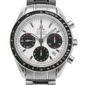 - オメガのフラッグシップモデル“スピードマスター"。こちらは2009年に発表された新キャリバーCal.3304クロノメーターを搭載したモデルです。ホワイトダイアルにブラックのインダイアルはコントラストがはっきりしており、差し色として使われている赤がアクセントになっています。