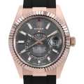 - 「スカイドゥエラー オイスターフレックス搭載モデル」を入荷いたしました。ムーブメントには380のパーツと7つの特許技術からなるCal.9001を搭載。文字盤中央で目を引くGMTディスク。GMTマスターとは異なりディスクが回転することで赤い逆三角形のマーカーから第二時間帯(ホームタイム)を読み取ります。また「サロス」と名付けられた年次カレンダー。文字盤外周の小窓で月を表し、3時の小窓で日付を表示。小の月の終わりに31日を飛ばす機構を持っています。リューズの二段引きを排し、リングコマンドベゼルを搭載。パーツへの負荷を減らし、ローカルタイム/ホームタイム/月・日付の変更を容易にしました。実用性と機能美を兼ね備え、ロレックスの革新性を感じさせるコンプリケーションモデルとなっております。