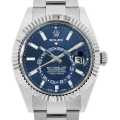 - バーゼルワールド2012で最も話題を集めた、ロレックスのモデル”スカイドゥエラー”を入荷いたしました。ムーブメントには380のパーツと7つの特許技術からなるCal.9001を搭載。文字盤中央で目を引くGMTディスク。GMTマスターとは異なりディスクが回転することで赤い逆三角形のマーカーから第二時間帯(ホームタイム)を読み取ります。また「サロス」と名付けられた年次カレンダー。文字盤外周の小窓で月を表し、3時の小窓で日付を表示。小の月の終わりに31日を飛ばす機構を持っています。リューズの二段引きを排し、リングコマンドベゼルを搭載。パーツへの負荷を減らし、ローカルタイム/ホームタイム/月・日付の変更を容易にしました。実用性と機能美を兼ね備え、ロレックスの革新性を感じさせるコンプリケーションモデルとなっております。