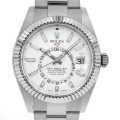 - バーゼルワールド2012で最も話題を集めた、ロレックスのモデル”スカイドゥエラー”を入荷いたしました。ムーブメントには380のパーツと7つの特許技術からなるCal.9001を搭載。文字盤中央で目を引くGMTディスク。GMTマスターとは異なりディスクが回転することで赤い逆三角形のマーカーから第二時間帯(ホームタイム)を読み取ります。また「サロス」と名付けられた年次カレンダー。文字盤外周の小窓で月を表し、3時の小窓で日付を表示。小の月の終わりに31日を飛ばす機構を持っています。リューズの二段引きを排し、リングコマンドベゼルを搭載。パーツへの負荷を減らし、ローカルタイム/ホームタイム/月・日付の変更を容易にしました。実用性と機能美を兼ね備え、ロレックスの革新性を感じさせるコンプリケーションモデルとなっております。