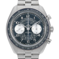 - "スピードマスター"の伝説的なデザインと、1940年代から続くオメガのクロノグラフウォッチの歴史から得たインスピレーションを融合した"クロノスコープ"コレクション。シルバーカラーのサブダイアルを備えたブルーの文字盤に、タキメータースケールを備えたベゼルリングは陽極酸化処理を施したブラックのアルミニウム製。文字盤中央のスパイラルを描く独特なレーストラックのパターンが印象的なデザインです。