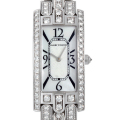 - ハリーウィンストンの時計の中では一番人気のモデル「アヴェニュー」。こちらはケースのみならずブレスレットにもふんだんにダイヤを配したラグジュアリーなモデルです。デザインの美しさだけでなく、ダイヤの美しさに定評があり、このモデルはかなり大粒のダイヤが施されているため、その美しさが一目で確認できます。