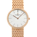 - パテックフィリップ、オーデマピゲと共に世界三大高級時計メーカーに名を連ねるヴァシュロン・コンスタンタン。1755年に創業し、継続的に時計を製造してきたメーカーとしては世界最古。2世紀半という時間の中で普遍の創造性を発揮し続け、最善を求めることを頑なに守り続ける名門時計メーカーです。こちらは手巻きのムーブメントを搭載した、ケースの厚みが僅か5ミリの超薄型ウォッチです。ベゼルにダイヤがセッティングされており、クラシカルさとゴージャスさを兼ね備えたモデルです。