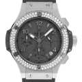 - 2005年にウブロの新たな意欲作として発表された「ビッグバン」。発表当時から現在に至るまで、その名の通り世界中で爆発的な人気で、国内外のスポーツ選手など多くのセレブリティに愛用されています。ビッグバンのカラーリングは比較的ブラックやゴールドを基調としたモデルが多いですが、こちらはダイアルとベルトがグレーを基調としたモデルで、41mmケースにはダイヤ付きのステンレス素材が使用されています。