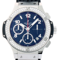 - 2005年に新たなウブロの意欲作として発表されてから今日に至るまで、その名の通り世界中で爆発的な人気を続ける“ビッグバン”。こちらは114個のダイヤモンドをセットしたゴージャスなベゼルが印象的なモデルです