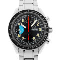 - スピードマスター発売40周年を記念して発表されたモデル”マーク40シリーズ”が入荷致しました。黄色の先端が目を引く日付針に昼と夜を2色で分けた24時間計が、アランシルベスタインを思い出させるカラフルな色使いが魅力的な腕時計です。自動巻きCal:1151、パワーリザーブ約44時間搭載。