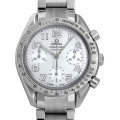 - 1957年に誕生したオメガのフラッグシップモデル「スピードマスター」。こちらはダイヤルにホワイトシェルを使用した、女性的でフェミニンな雰囲気のモデルです。ケース径は38ミリとなっており、女性の方が着用しても違和感のないサイズとなっております。