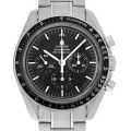 - 宇宙空間での使用を想定した様々なテストを行い、最後まで動きつづけた唯一の腕時計“スピードマスター。1969年に人類初の月面着陸に同行し、1970年にはアポロ13号における酸素爆発の危機から乗務員救ったことで、「ムーンウォッチ」としての地位を確立しました。どの空間でも対応でき、無重力でも動くように手巻きムーブメントを搭載。こちらのモデルではムーブメントにレマニアベースの手巻き・Cal.1863が採用され、シースルーバックからその動きをご堪能頂けます。パワーリザーブ48時間、5気圧防水。