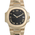 - 既に生産終了したRef.3800の入荷です。現在は入手困難になっており、プレミアが付いていることもしばしば見受けられます。ノーチラスのダイアルラインではあまり存在しない、アップライトローマンインデックスのブラックダイアルを備えているのが特徴です。最終型の観音開きクラスプを使用しています。